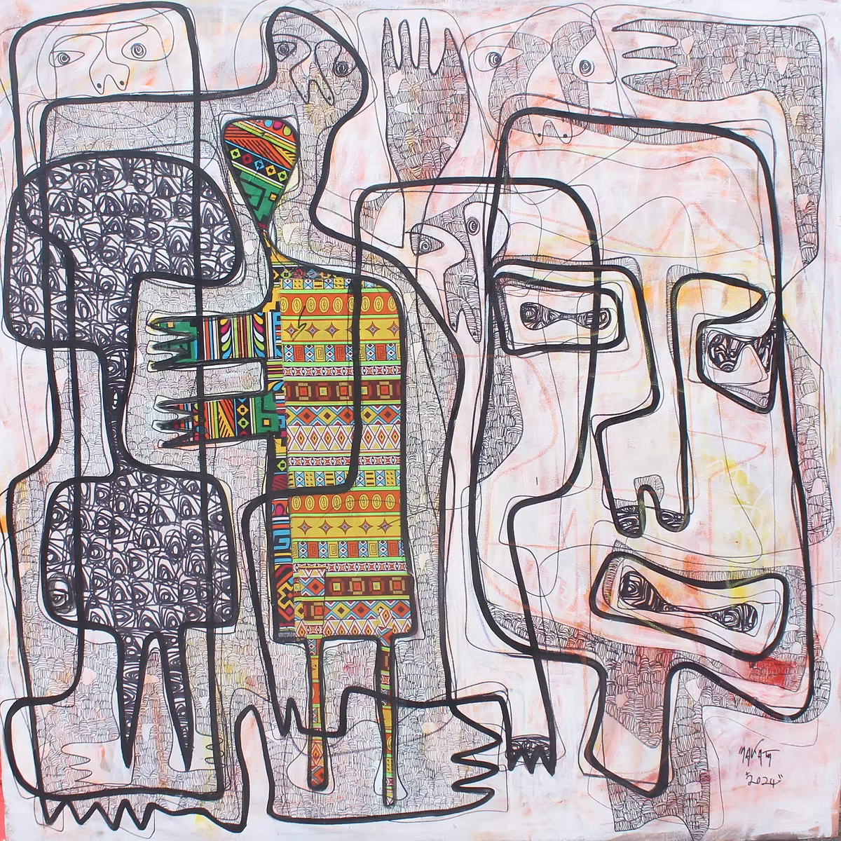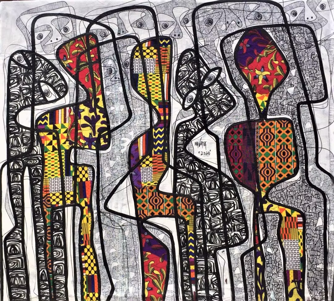 Medium: ink, Fabric and Acrylic on canvas